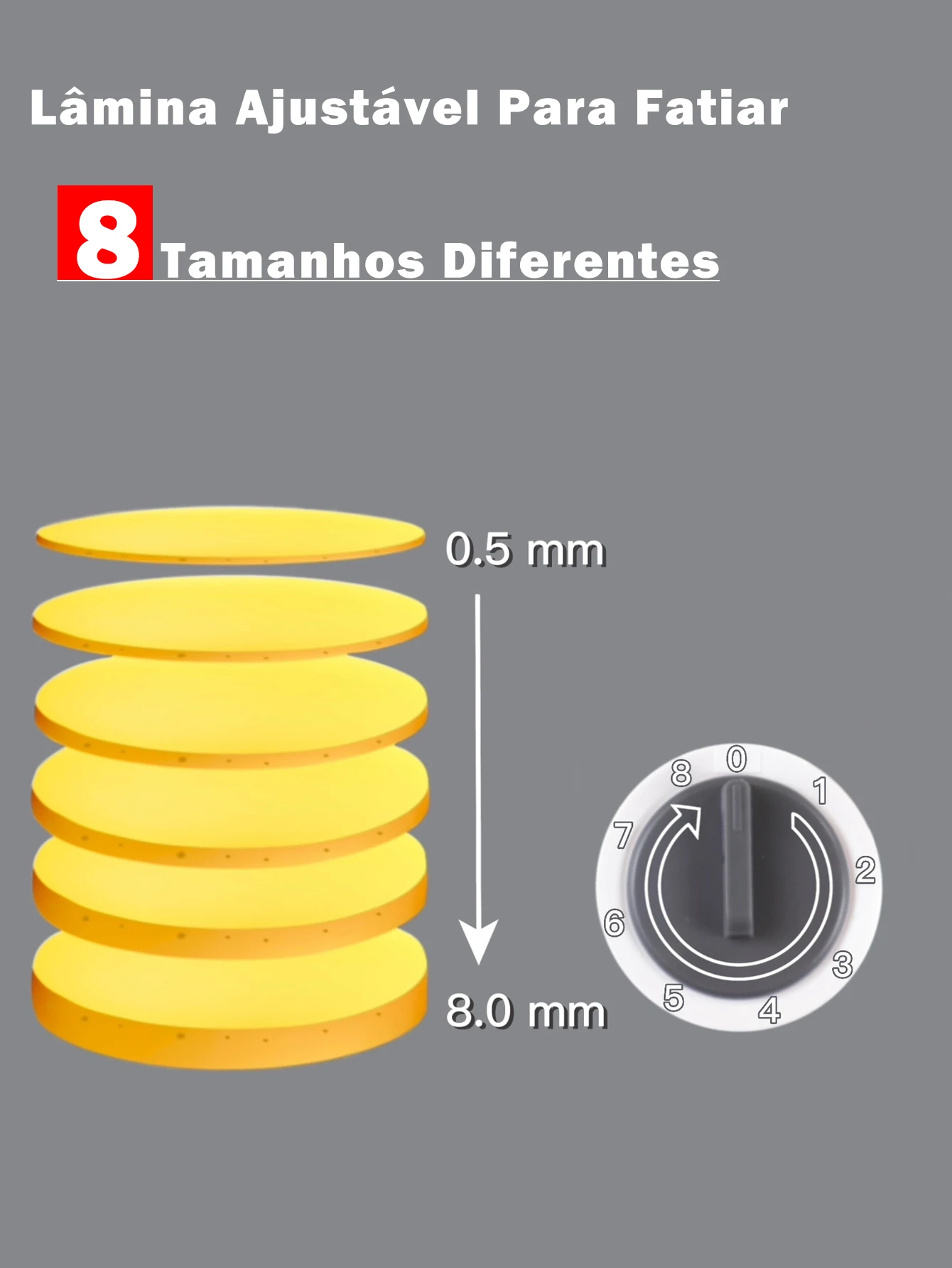 As lâminas de aço inox intercambiáveis ao regular e ajustar, pode cortar uma variedade de frutas e vegetais em espessuras conforme sua necessidade (de 0,5 a 8mm).
