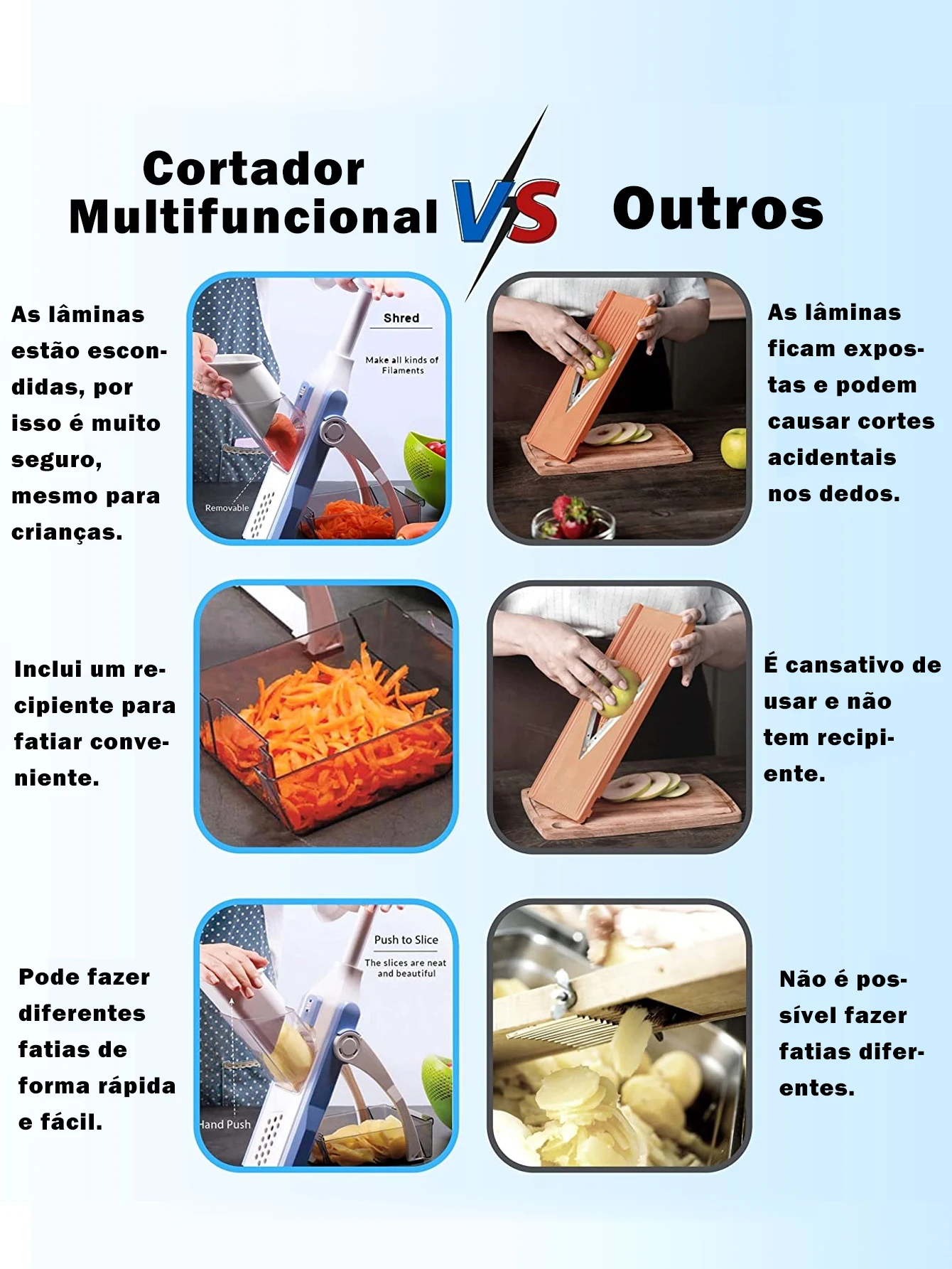 Cortador Multifuncional 5 Funções Plástico Aço Inox Fatiador